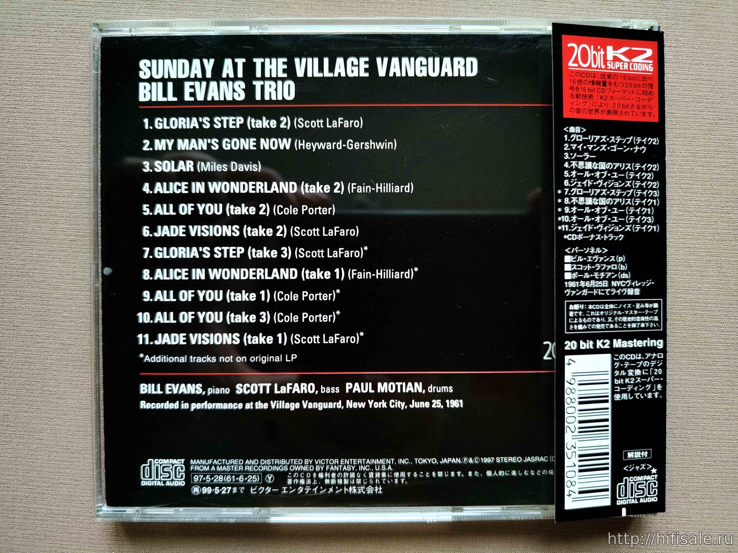 Remastered using with 20bit A/D K2 SUPER CODING interface at JVC Studios