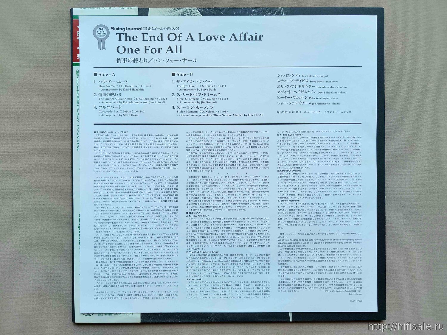 One For All – Jim Rotondi, Steve Davis, Eric Alexander, David Hazeltine, Peter Washington, Joe Farnsworth – The End Of A Love Affair