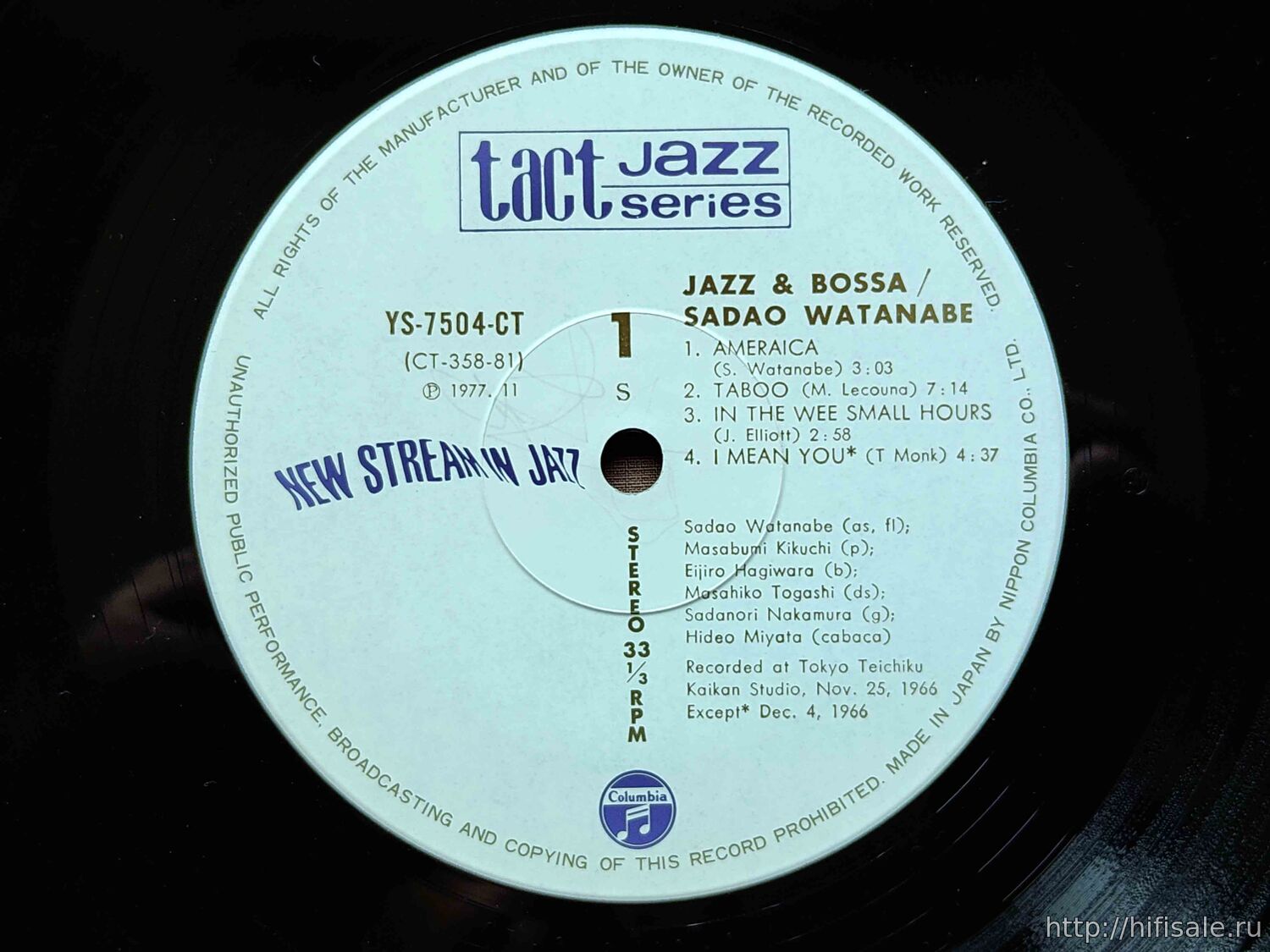 Recorded at Tokyo Teichiku Kaikan Studio, Nov. 25, 1966