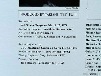 Recorded at Aoi Studio, Tokyo on March 25, 1974.